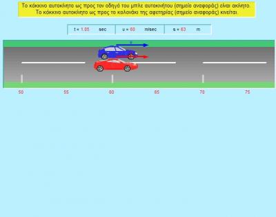 Ταυτόχρονα με την κίνηση των αυτοκινήτων δείχνονται οι τιμές της ταχύτητας και του διαστήματος που έχουν διανύσει.